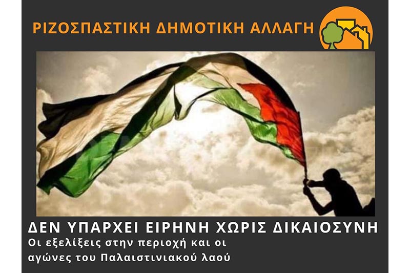 Στεκόμαστε αλληλέγγυοι στον Παλαιστινιακό λαό και στον πολύχρονο αγώνα του να ζει σε μια ελεύθερη πατρίδα.