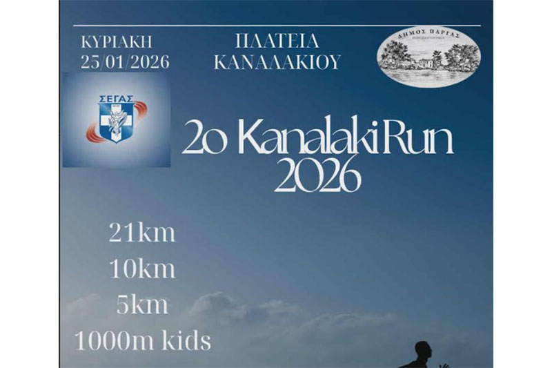 Ο Δήμος Πάργας, σε συνεργασία με τον ΣΕΓΑΣ, ανακοινώνει τη διεξαγωγή του 2ου Kanalaki Run, το οποίο θα πραγματοποιηθεί την Κυριακή 25 Ιανουαρίου 2026 με αφετηρία την Πλατεία Καναλακίου.