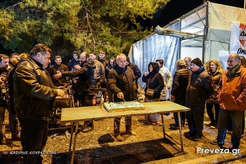 Συγκέντρωση αγροτών στο Μπλόκο του Λούρου στην Πρέβεζα, όπου πραγματοποιήθηκε η κοπή της βασιλόπιτας.